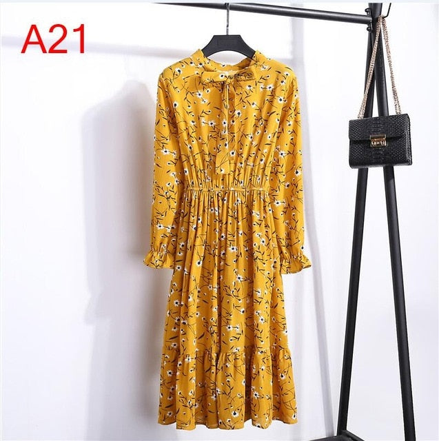 Step into vintage elegance with our Chiffon Shirt Dress, perfect for autumn days and winter gatherings. This dress offers a blend of classic style and modern comfort.